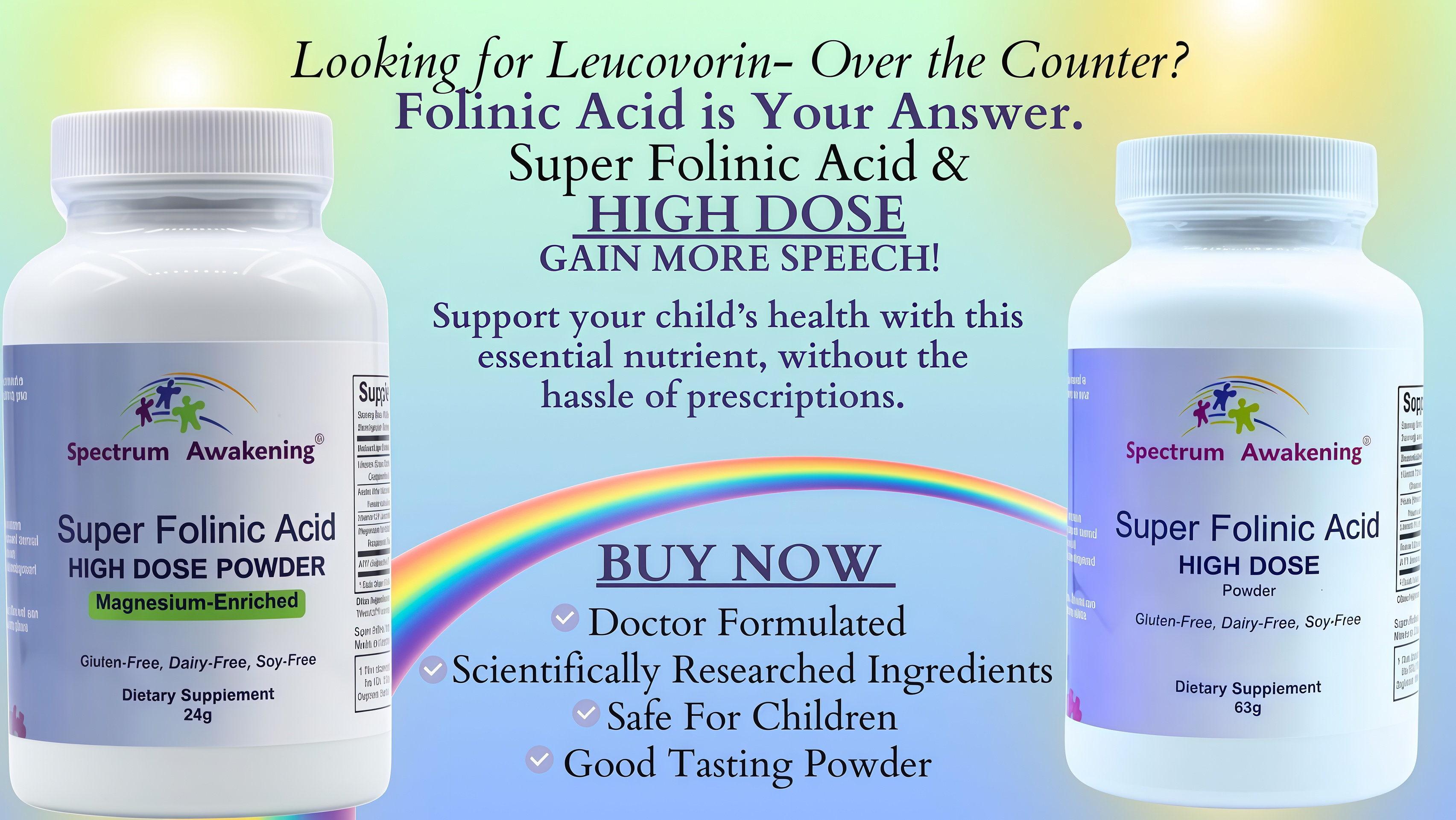 Folinic Acid is the Generic, Over-The-Counter (OTC), form of the pharmaceutical, Leucovorin. Folinic Acid can be used in replace of Leucovorin since they are identical. Folinic acid has been used all around the world to help children with autism improve their language. This sweet-tasting powder can be mixed into any food or drink, and is gluten and dairy free. Once you see the improvements, you’ll know it’s the best vitamin you’ve ever tried.